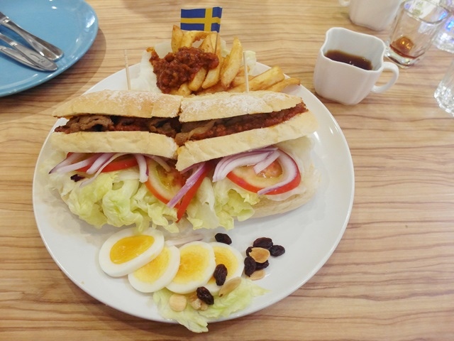 旁邊還有黃金色的水煮蛋和肉醬薯條