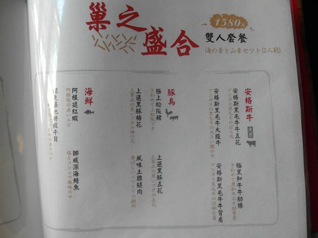 這次我們四個人點了一套$1980燒肉魂海陸大餐 跟一套$1580巢之盛合雙人套餐