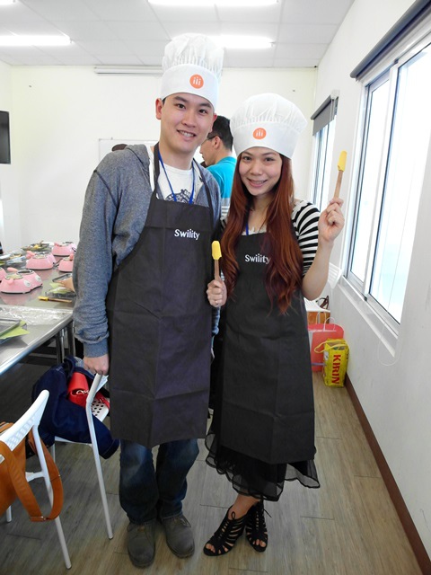 接著就是穿上圍裙 戴上廚師帽 這個上完課可以帶回家喔!