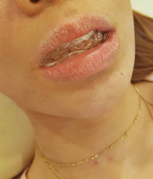 然後會在嘴裡放入保鮮膜